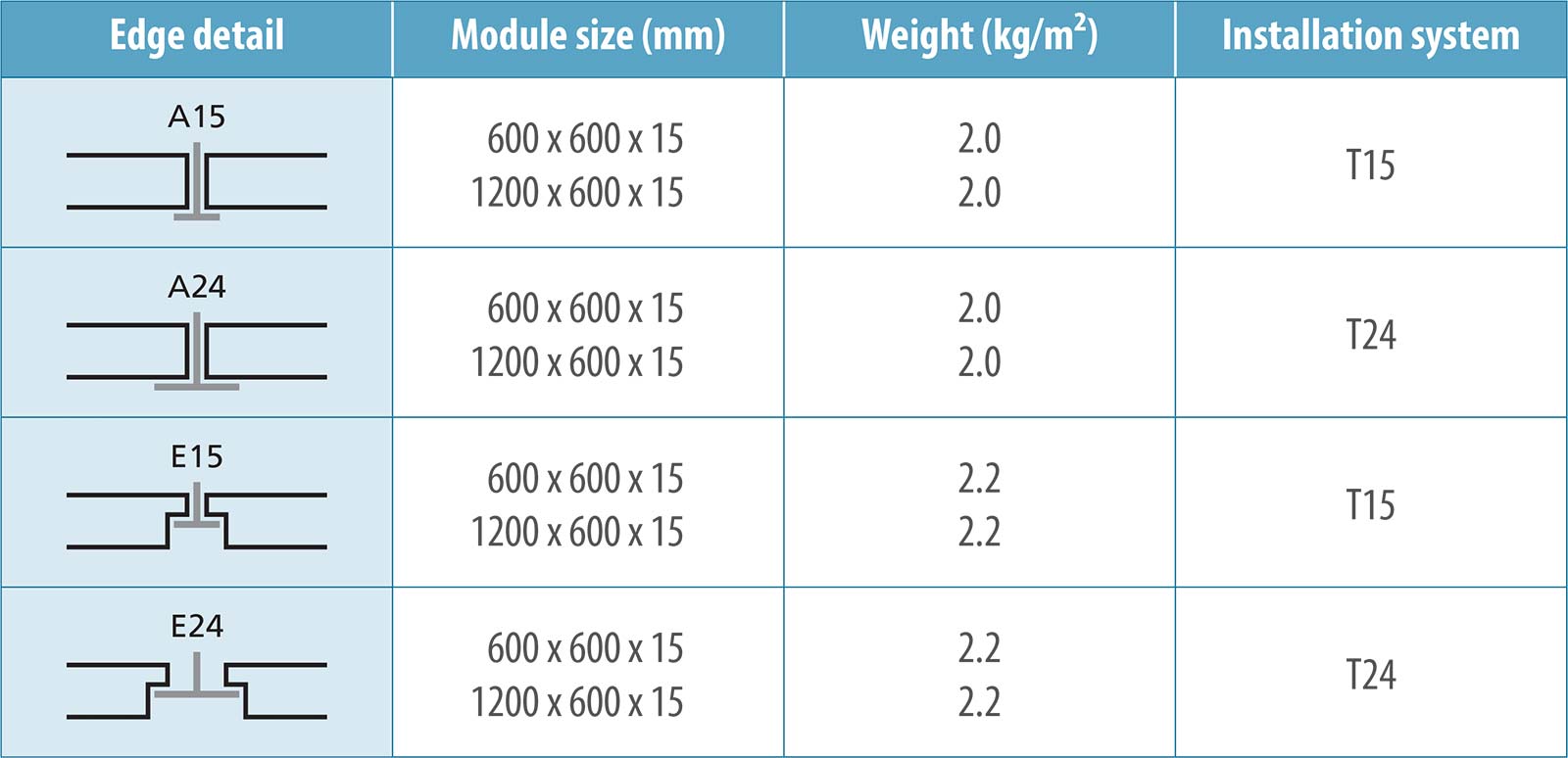 High sound absorption, fire class A1 and dimensionally stable even at humidity levels of up to 100%.