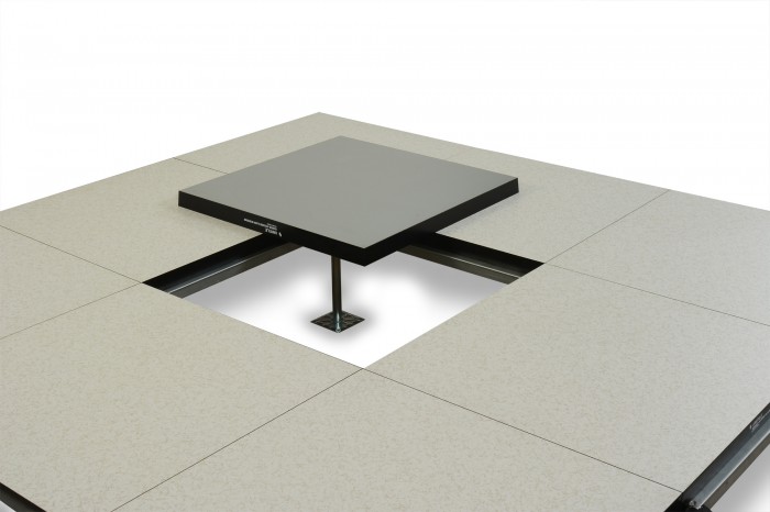 Unitile Calcium Sulphate access flooring system is manufactured from 1600 Kg/ cubic meter density fibre reinforced Calcium Sulphate which forms the core of the panel. Non- combustible high quality alpha- hemihydrate single pressed gypsum and non-toxic unbleached cellulose fibers are used as reinforcing material. The base & top surface of the core is factory bonded using an appropriate combination of surface finishes such as Aluminum, Galvanized sheet steel, High Pressure Laminate etc. The edges of the panel are protected with a PVC edge band. The system offer an excellent acoustical sound deadening value.