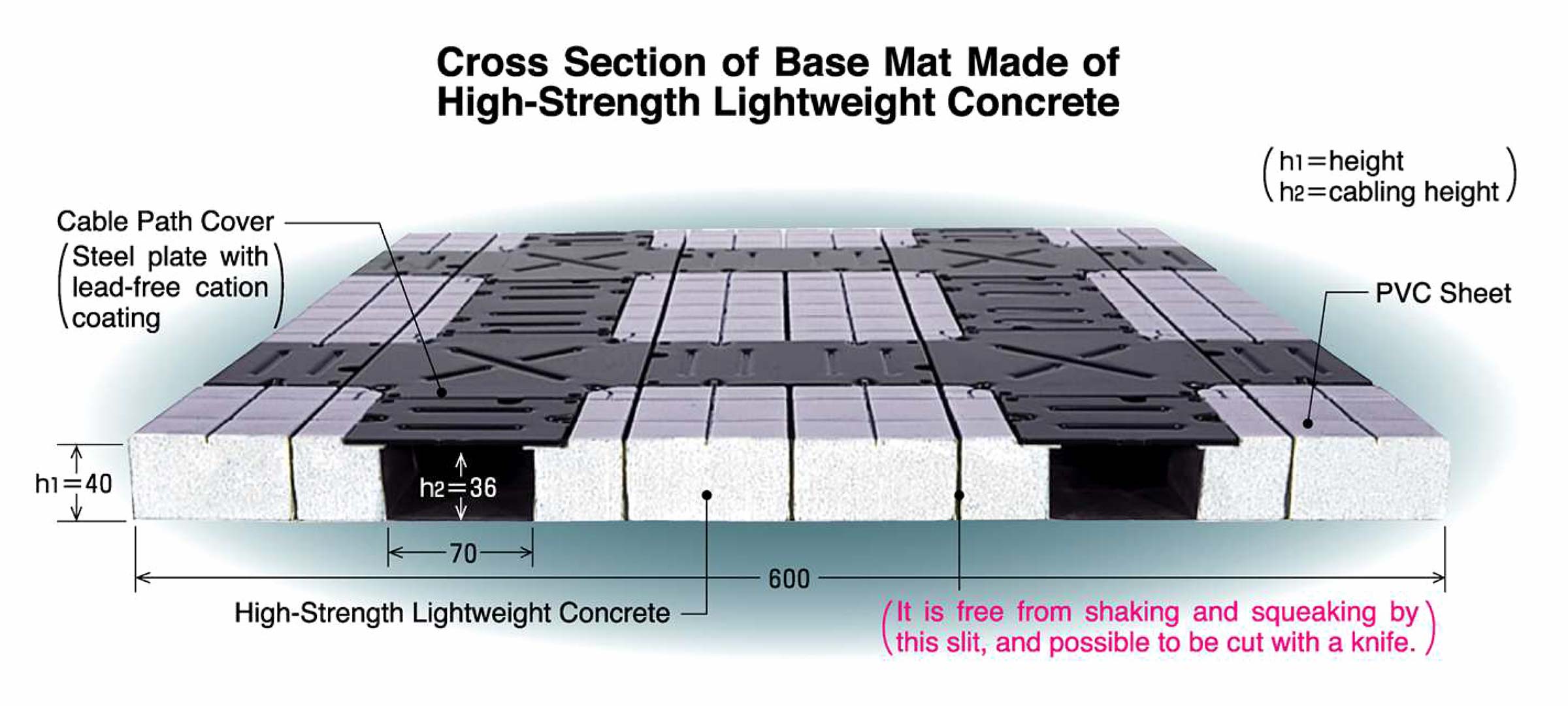 The Network Floor, though made of concrete, is specially designed to be able to be cut with a knife. This makes it possible to install cabling appliances anywhere by cutting the concrete mat, and without blocking cable paths.