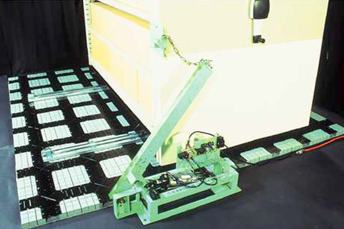 With a mobile library placed on Network Floor, it was measured for resilience against the vibrations and shocks generated by the movement and stopping of the library. The mobile library was moved back and forth on rails simply laid on the surface of the Floor with a maximum allowable live load of 2 tons, at a speed of 10 seconds per cycle of forward and backward movement. In such a case the Network Floor can withstand 250,000 passages of forward and backward movement of the library. This figure proves that the Network Floor possesses sufficient strength for a service life of 50 years, assuming that one year is 250 days and 20 daily passages of forward and backward movement of the library.